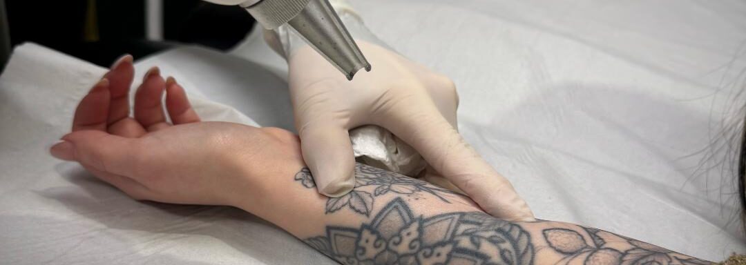 Using a handheld device, we apply powerful pulses of energy to the unwanted tattoo. The resulting heat penetrates through the top layer of skin, shattering the tattoo ink into tiny fragments. The body’s immune system then gradually absorbs the fragmented pigments, meaning that over several sessions the tattoo’s appearance diminishes. More than one treatment may be needed to achieve the optimal results.